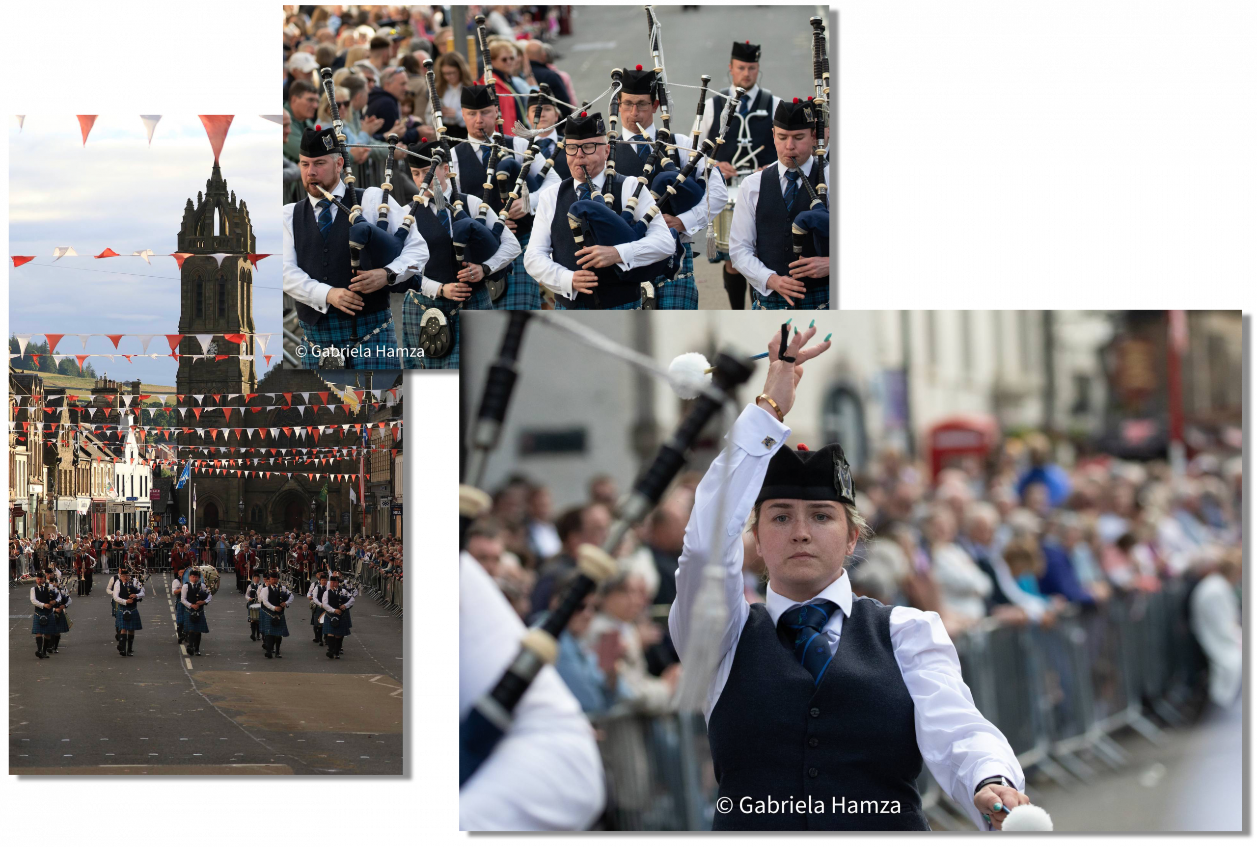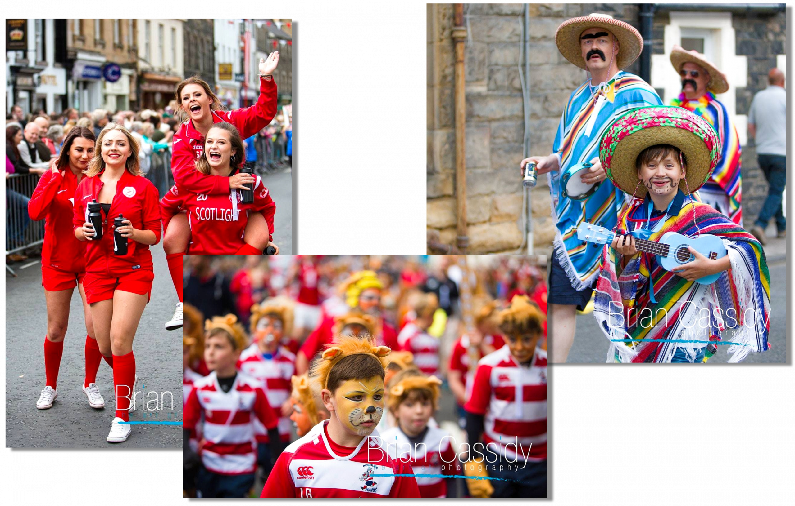 The Friday evening (the 'Nicht afore the Morn’) is when the fruits of much secret preparation are revealed at the Fancy Dress Contest on Tweed Green. In 1907, a fancy-dress 'cycle parade' was organised by Peebles Rovers Football Club, with the two local Bands accompanying the cyclists around the town. Though not strictly in connection with the March Riding, the Fancy Dress Cycle Parade came to be held on the eve of the March Riding, and in later years was fully integrated with the festivities. Now the Fancy Dress Contest and Fancy Dress Parade is a tremendous spectacle, with support and participation from all ages and quarters of the town.