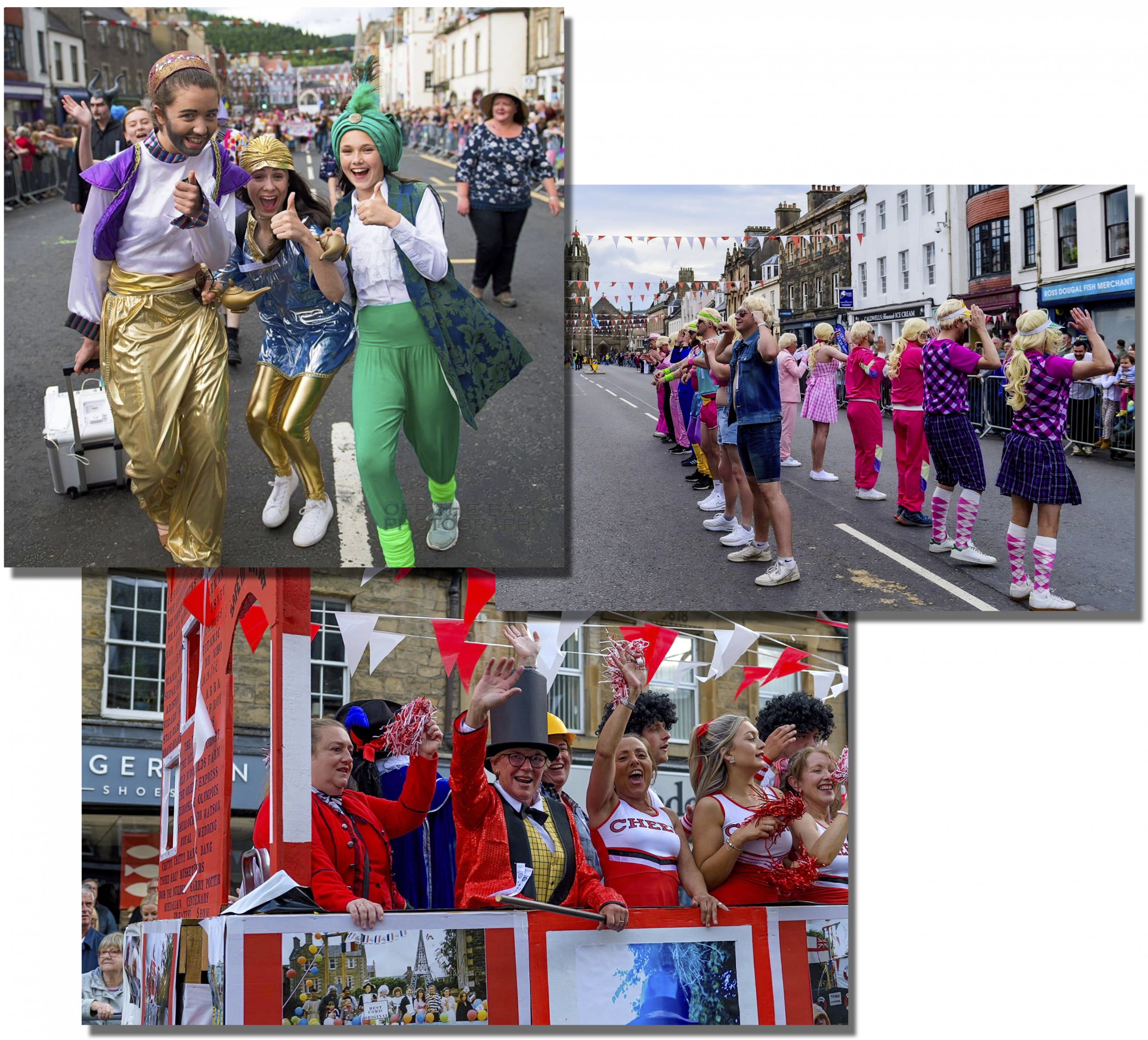 Following the judging of the Fancy Dress Competition, the Fancy Dress Parade commences at around 7:30 PM, led by the Cornet and accompanied by pipe and silver bands. The procession weaves through the town, with participants showcasing their costumes to enthusiastic crowds lining the streets. Entertainment along the route includes performances by the Y.M. Dancers and the Rugby Club, adding to the festive atmosphere. The parade route typically includes Tweed Green, Tweed Brae, Eastgate, High Street, Cuddy Bridge, Old Town, Young Street, Rosetta Road, March Street, Northgate, High Street, Port Brae, and returns to Tweed Green.